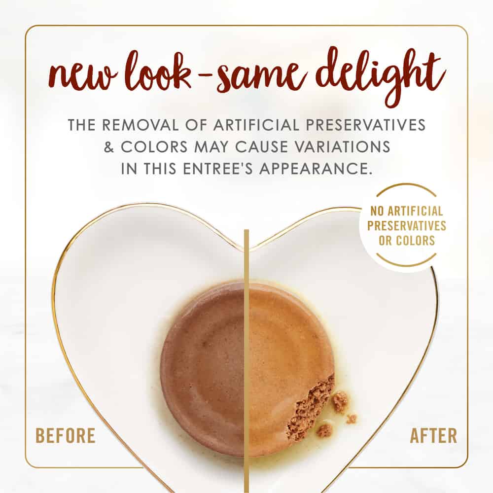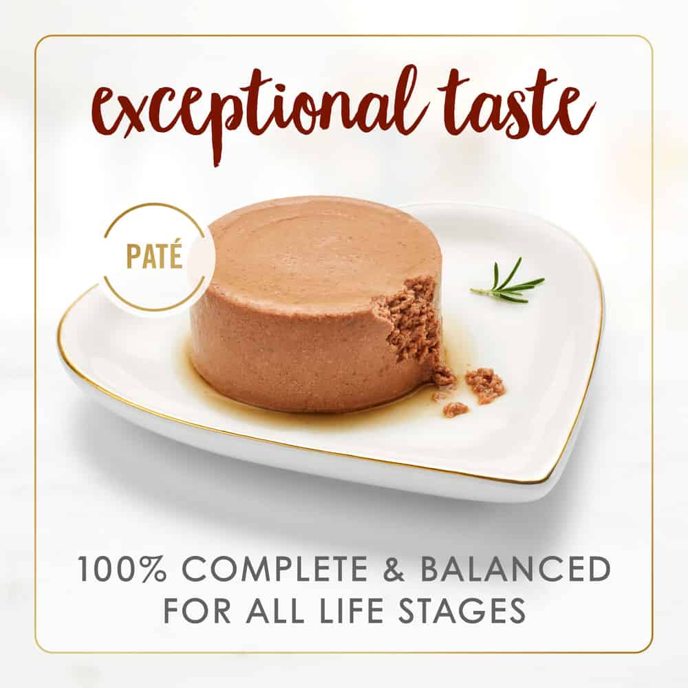 This flavorful, high-quality pate cat food has a blend of vitamins and minerals to support your cat’s whole body health with a smooth cat food wet pate texture cats love. This canned cat food is made without artificial colors or preservatives, so you know your cat is getting everything they need and nothing they don’t. Show your cat how much you care with the spellbinding aroma, smooth pate texture and delectable gourmet meal flavor they can’t resist.