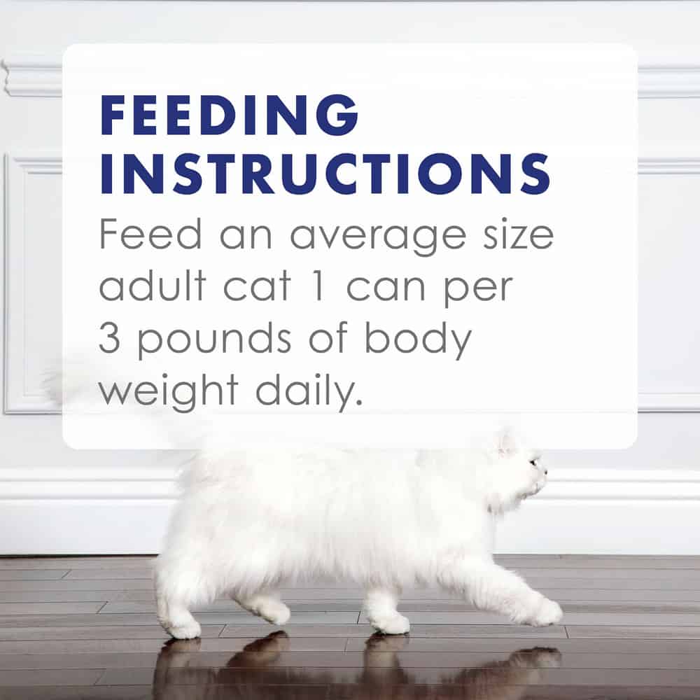 - Feed an average size adult cat 1 can per 3-1/2 lbs of body weight daily.
