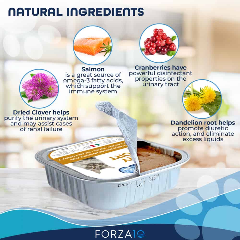 Forza10 Actiwet Urinary is a specially designed cat food to help support urinary health in cats by helping stop idiopathic cystitis, lower urinary tract inflammation, and struvite stone formation. This cat food is free from harmful ingredients such as GMOs, by-products, wheat, soy, artificial preservatives, colors, or flavors. Forza10 recipes are supported by numerous scientific studies conducted in association with veterinarians and European universities and published in prestigious international scientific journals. Feel like a great cat parent with this super delicious and nutritious recipe!