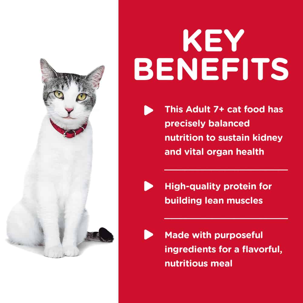 - Provides mature cats with high-quality protein to help maintain lean muscle