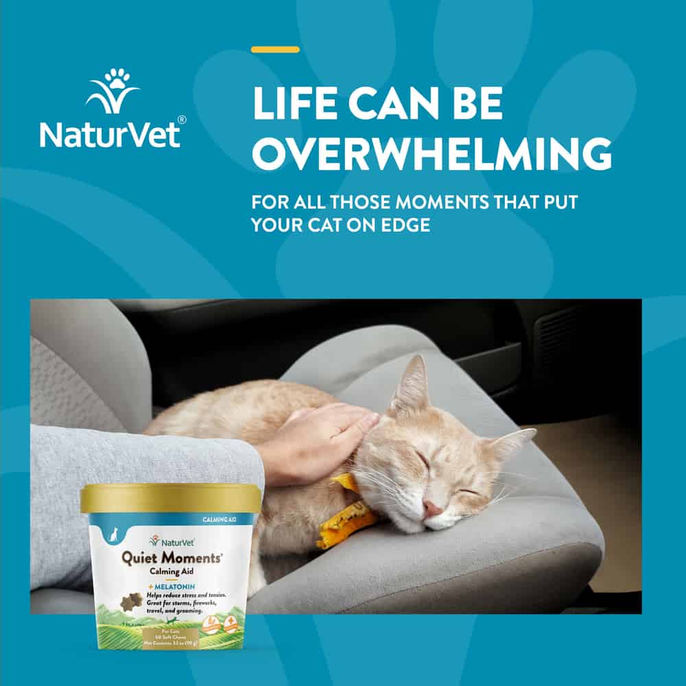 NaturVet Quiet Moments Calming Aid Plus Melatonin Supplement Soft Chews for Cats