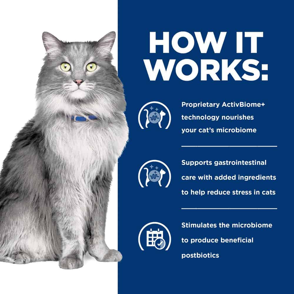 - Hill's Prescription Diet Gastrointestinal Biome Digestive/Fiber Care with Chicken Dry Cat food is specially formulated by Hill’s nutritionists and veterinarians to support your cat’s digestive health.