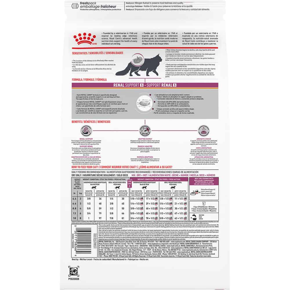 - SUPPORTS KIDNEY HEALTH: Royal Canin Veterinary Diet Renal Support S is a veterinary-exclusive dry cat food to support cat kidney health