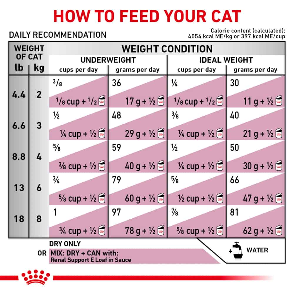 - When feeding Dry + Wet, this food is best mixed with Royal Canin Veterinary Diet Feline Renal Support E Loaf in Sauce Canned Wet Cat Food.