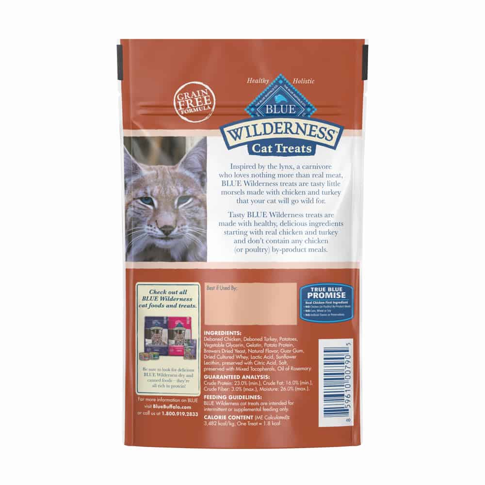 - BLUE Wilderness cat treats are intended for intermittent or supplemental feeding only.