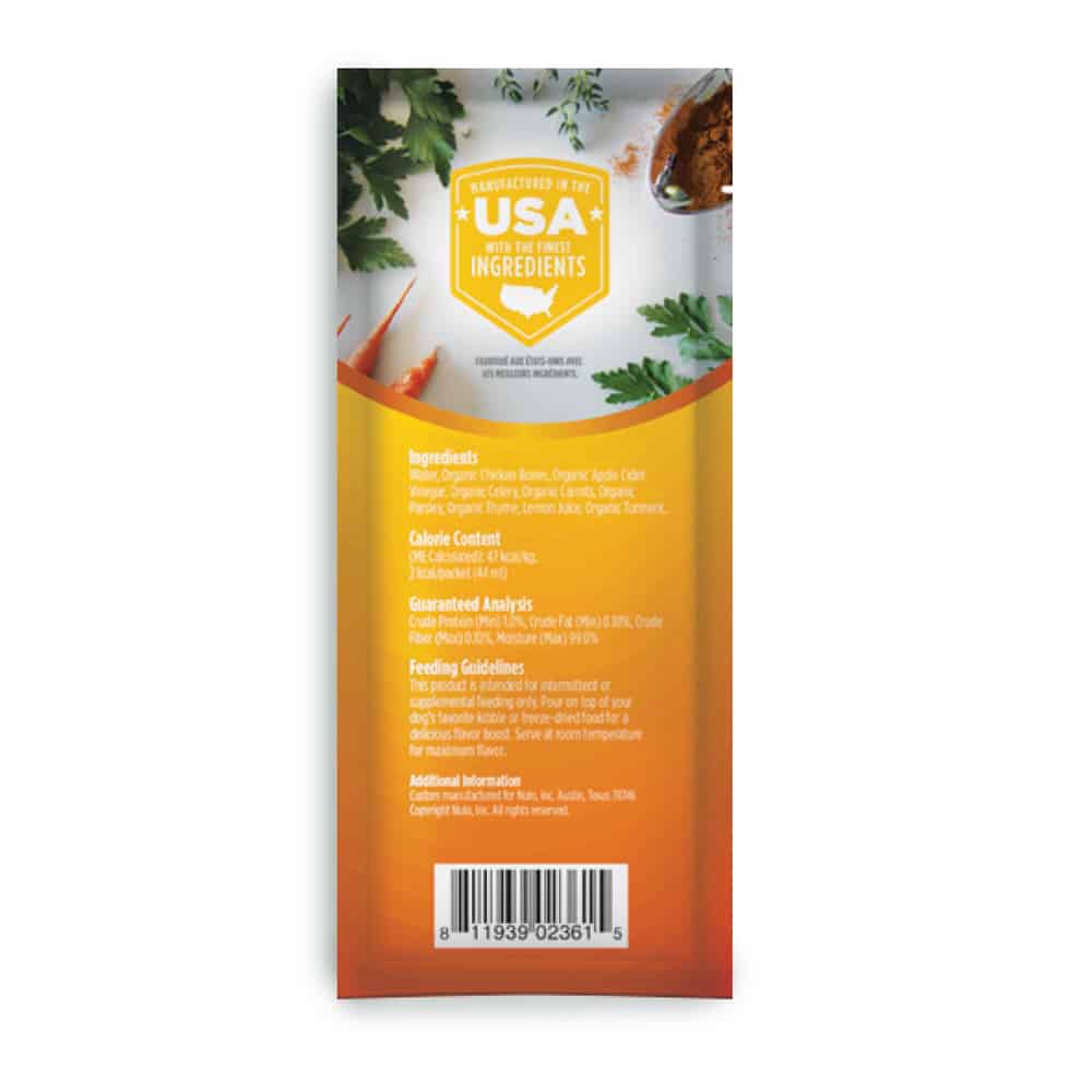 | Other Ingredients: Water, Chicken Bones, Apple Cider Vinegar, Celery, Carrots, Parsley, Thyme, Lemon Juice, Turmeric. |