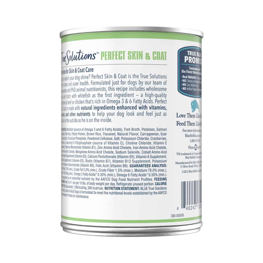 Blue Buffalo True Solutions Perfect Coat Skin & Coat Care Formula Adult Canned Dog Food Dosage: