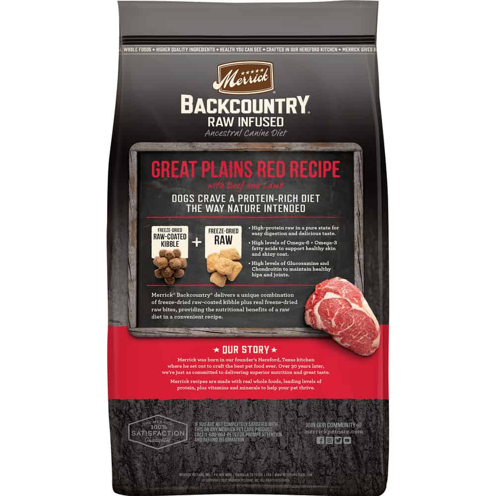 - Merrick Backcountry Raw Infused Grain Free Dog Food, Great Plains Red Recipe, Freeze Dried Dog Food