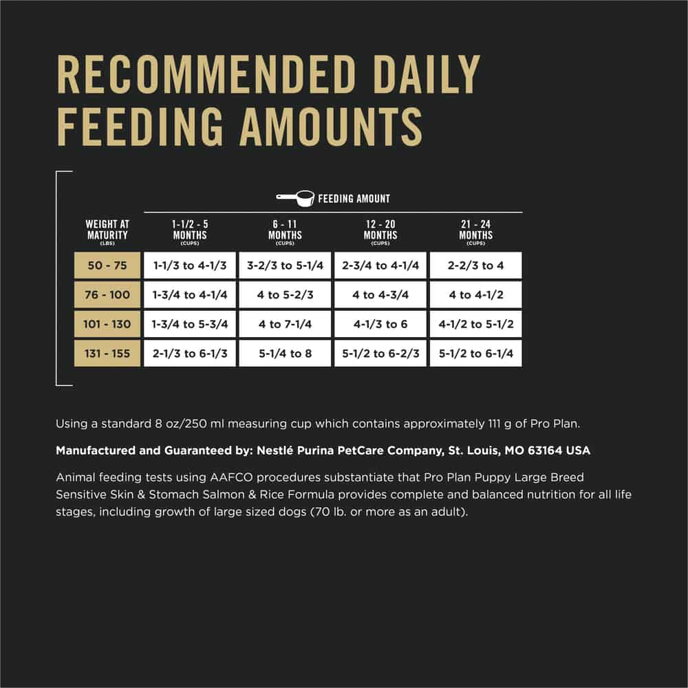 Purina Pro Plan Puppy Large Breed Sensitive Skin & Stomach Salmon & Rice Formula Dry Dog Food Directions: