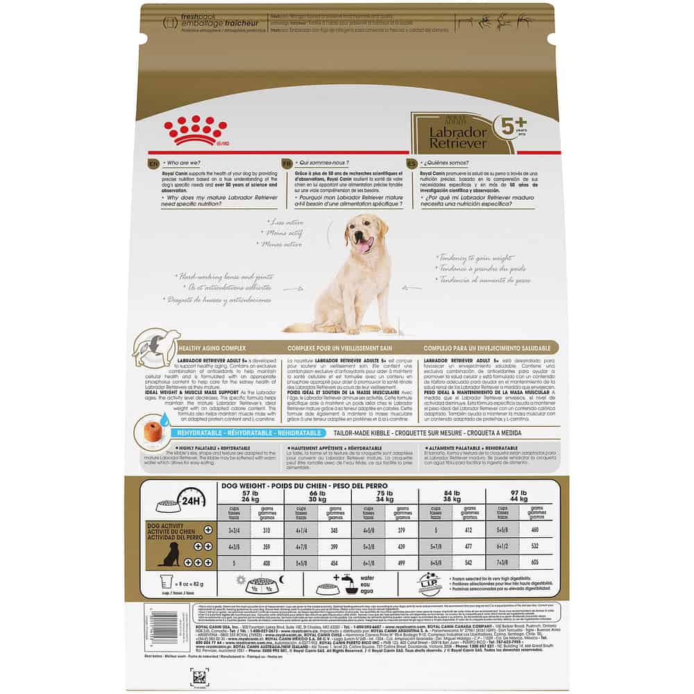 - FORMULATED FOR PUREBRED LABRADOR RETRIEVERS: Royal Canin Labrador Retriever Adult 5+ Dry Dog Food is designed to meet the specific diet needs of maturing Labrador Retrievers 5 years and older