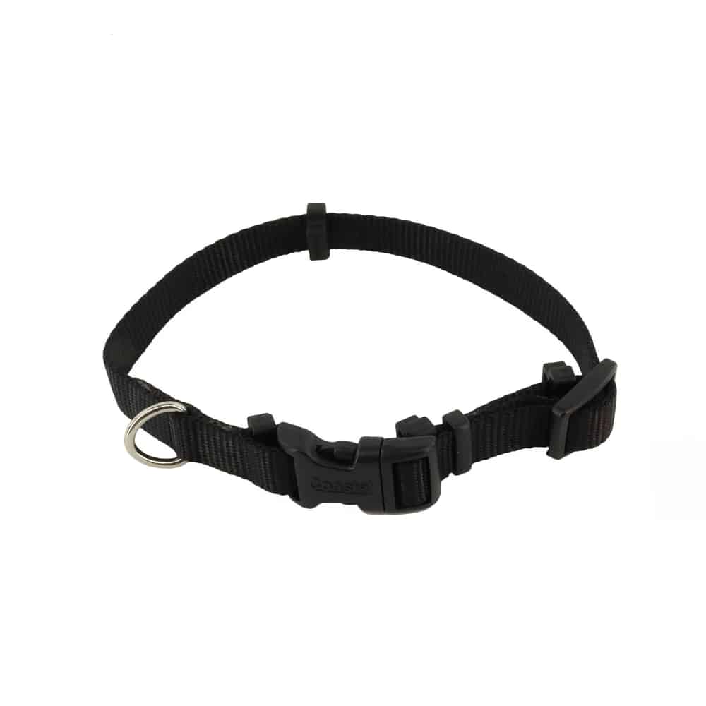 Rachet-style flea collars slide into the flexible keepers of the SecureAway™ Adjustable Flea Collar Protector