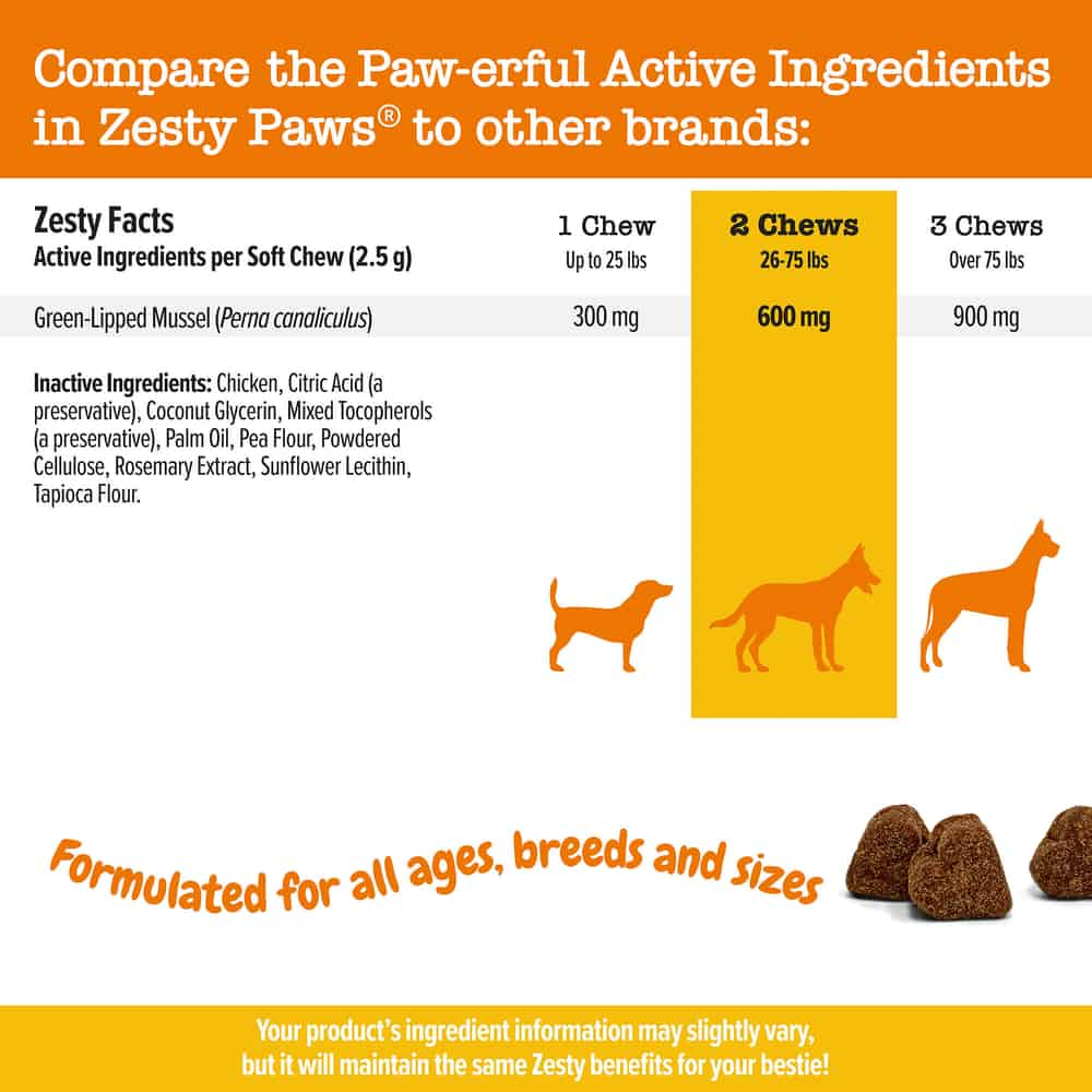 Zesty Paws Mussel Mobility Bites™ Chicken Flavored Soft Chew Hip & Joint Supplement for Dogs Dosage: