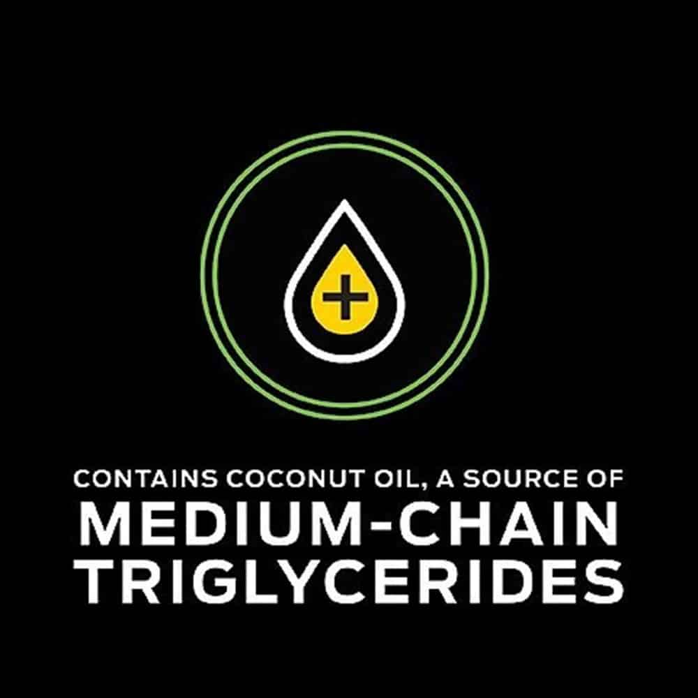 - Contains coconut oil, a source of medium chain triglycerides