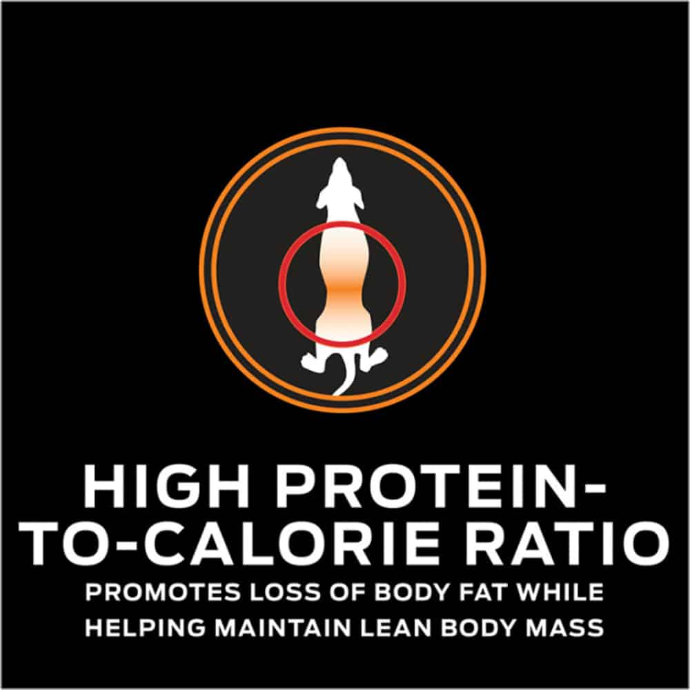 - Purina Pro Plan weight management dog food with a high protein-to-calorie ratio promotes loss of body fat while helping maintain lean body mass