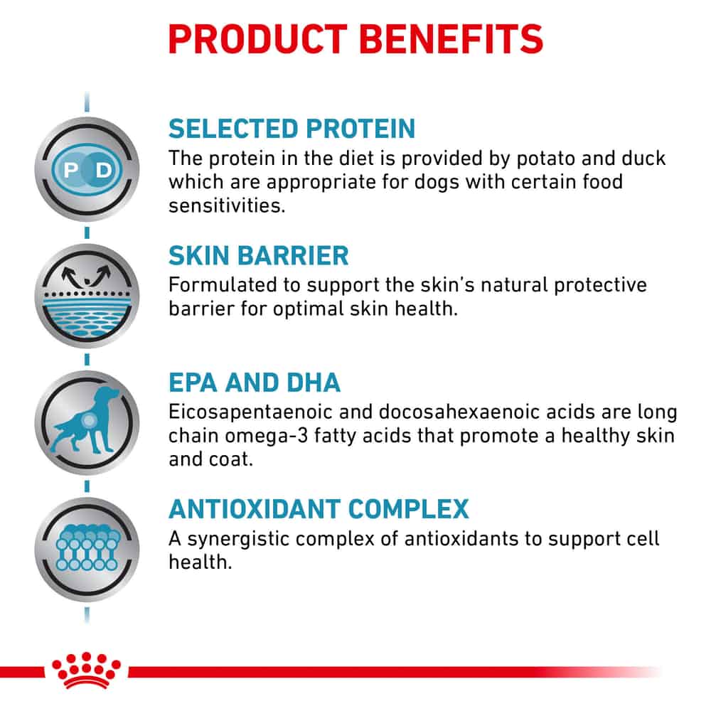 MINIMIZE TRIGGERS: Exclusively feed Royal Canin Veterinary Diet Canine Selected Protein Dog Food and avoid table scraps or human food, as this can potentially trigger their allergies. Consult your veterinarian to determine which treats are suitable for your dog with sensitivities to ensure they don't undermine the benefits of their veterinary diet.
