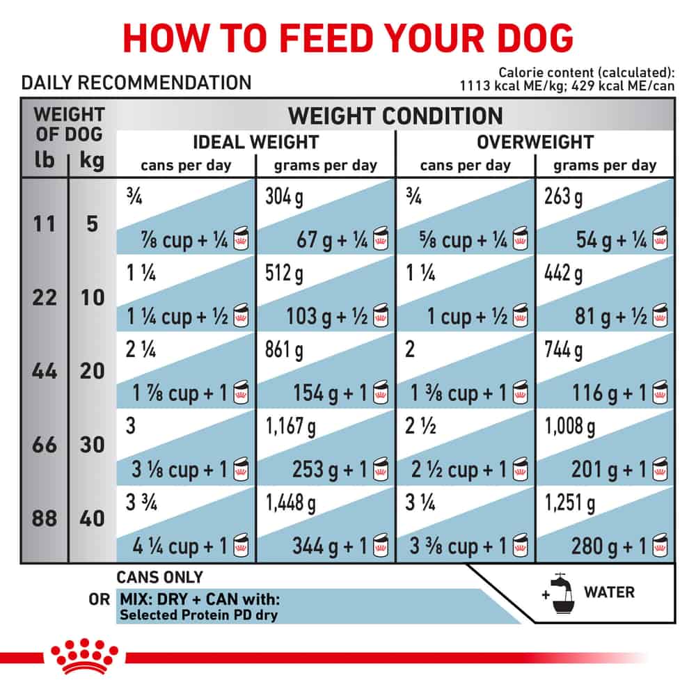 - When feeding Dry + Wet, this food is best mixed with Royal Canin Veterinary Diet Canine Selected Protein PD Dry Dog Food.