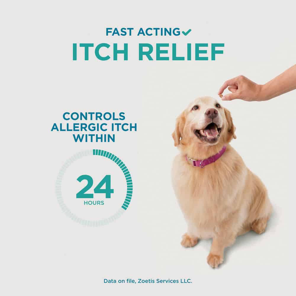 Apoquel Chewable for Dogs is a prescription item used to treat and control itching and inflammation in dogs resulting from a variety of causes, including flea allergy, food allergy, contact allergy and atopic dermatitis. Apoquel delivers onset of relief within 4 hours. It effectively controls itching within 24 hours. Apoquel requires a prescription from your veterinarian, and is sold per chewable tablet in strengths of 3.6 mg, 5.4 mg, or 16 mg.