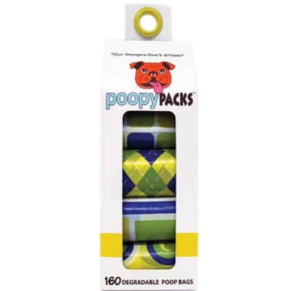 Poopy Packs are easy-to-use, 100% degradable dog waste bags. You can carry them with you in your pocket or purse or even store them in your car for when you are on the go.