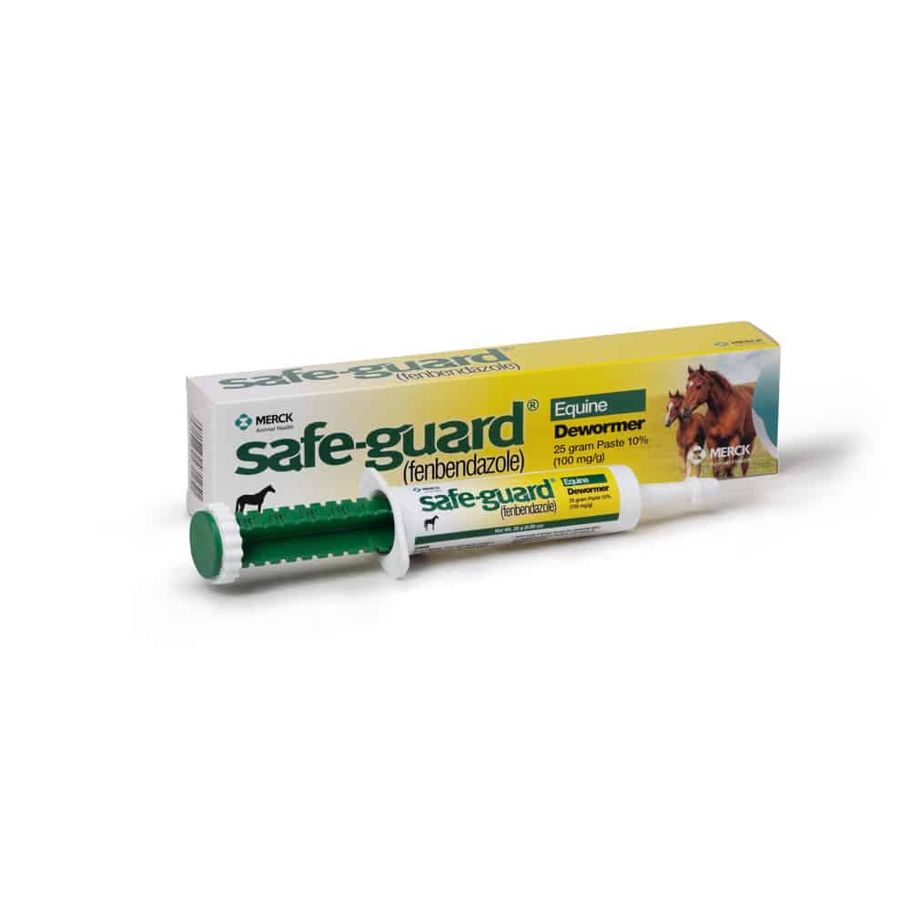 - Safe-Guard Equine Dewormer Paste is administered orally at a rate of 2.3 mg/lb (5 mg/kg) for the control of large strongyles, small strongyles, and pinworms. One 25 gram syringe will deworm a 1,100 lb horse. One 92 gram syringe will deworm eight 500 lb horses. For foals and weanlings (less than 18 months of age) where ascarids are a common problem, the recommended dose is 4.6 mg/lb (10 mg/kg); one 25 gram syringe will deworm a 550 lb horse.